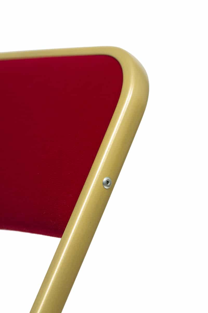 Sa structure métal recouverte d’un époxy or est élégante. Son assise et dossier sont très confortables grâce à un capitonnage de qualité et une mousse d’une épaisseur de 35mm. Cette chaise pliante est extra plate, elle est représente la chaise raffinée dans toute sa splendeur.